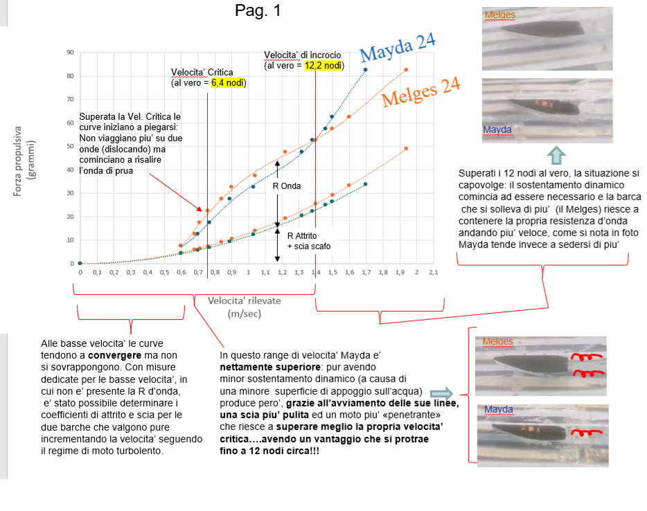 Per studiare meglio i fenomeni fisici coinvolti nella Planata abbiamo eseguito prove in vasca navale autocostruita, provando in scala i due modelli: Mayda 24 e Melges 24. Il Melges 24 ha notoriamente linee d'acqua volte a produrre una spinta dinamica consistente.